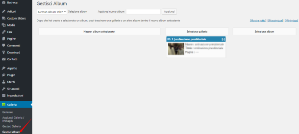 Per costruire un nuovo album devi selezionare la voce Gestisci Album dal menu laterale.